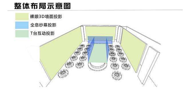 在宴會廳的實(shí)際應(yīng)用中,又分為720度和360度投影。多以宴會廳墻體作為投影載體,結(jié)合4D動畫使宴會廳空間呈現(xiàn)動態(tài)的3D立體效果。立體成像在全息宴會廳中具有可變化性,可以根據(jù)不同的需求來變化不同的場景。