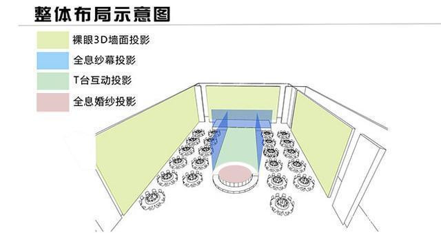 全息宴會廳是利用了全息投影技術(shù)打造的具有沉浸式舞美體驗(yàn)效果的新型宴會廳,其主要以裸眼3D、舞臺全息、墻面(環(huán)幕)投影、地面互動投影和婚紗投影等幾個(gè)單元構(gòu)成。